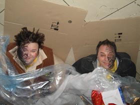 - Когда мне предложили эту роль, то я сразу загорелся: отложил на время все свои проекты, поцеловал жену и поехал в Киев из Москвы, чтобы полтора месяца в Украине ночевать в магазине, - рассказал корреспонденту «КП» Н. Щербашиной Игорь Письменный. – В фильме «играли» сразу два киевских супермаркета в центре города: экстерьер – «Мандарин-плаза», а «внутренности», где происходят сами чудеса, снимали в «Караване». Мы с Витей Андриенко играем не только грабителей, но и милиционеров, пытающихся их поймать, то есть у нас по две роли на брата в этом фильме. Для комедийных актеров это очень интересная работа – есть где разгуляться. Кстати, кто не знает: мой друг Виктор Андриенко не только «долгоносик», но еще и профессиональный каскадер и все трюки в картине делает сам.
