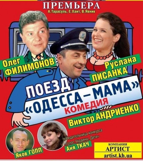 Казалось бы, известная анекдотическая ситуация. В одном купе столкнулись одессит, вечный холостяк, не делающий ни одного движения без разрешения мамы, и «щира красуня»-украинка. Вроде бы все понятно. Смешно, игриво, искрометно, однако... Никто даже не может предположить, чем это все закончится. Потрясающе веселая и невероятно трогательная история заставит вас не толь ко смеяться, но и плакать. В спектакле собраны яркие актеры: Олег Филимонов, Руслана Пысанка, Виктор Андриенко. А украсит этот актерский ансамбль «INVITED STAR» любимая актриса Эльдара Рязанова, народная артистка СССР Ольга Волкова. И еще одна жемчужинка проекта - поет в этом спектакле победительница шоу «Голос Украины. Дети» на канале 1+1 «маленькая Эдит Пиаф» 8-ми летняя Аня Ткач. Авторы пьесы Александр Тарасуль, Евгений Хаит и Виктор Явник Режиссер постановщик Игорь Славинский Премьеру ожидаем 12 и 13 декабря! Ждите, потому шо, после премьеры наш агицын-паровоз приедет и в ваш город! |
