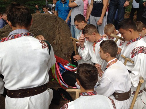22 августа, вблизи села Новоселица Виноградовского района, сильнейшие люди Закарпатья подняли легендарный "КАМЕНЬ СИЛЫ" опрышка Григория Пинти. По легенде, закарпатский "Робин Гуд" опрышок Григорий Пинта, благодаря физическим упражнениям с тяжелой глыбой, укреплял свои мышцы. Эту глыбу люди назвали "Камень силы Пинты". Когда враги схватили и казнили Григория, боевые друзья атамана бросили "Камень Силы" на землю, помолились возле него, что как придут лучшие времена и народ станет свободным, пусть люди поднимут легендарный камень и станет он памятником Григорию Пинте, который отдал свою жизнь за свободу народа. Закарпатские силачи, местные жители, писатели пришли к "КАМНЮ СИЛЫ", чтобы выполнить предначертанное предками, поднять камень и поставить на место. Но не с первой попытки удалось перевернуть легендарный камень Пинты. Для этого пришлось приложить не мало усилий и все же камень поставили так, как было во времена Григория Пинты. "Нашей целью было не только поднять этот камень. Эта акция для поднятия духа и национального единства...",- отметил стронгмен Михаил Гал, организатор этой акции. Также он рассказал, что на этом месте состоится подписание договора о намерении основать Международный силовой фестиваль "ВЕЛЕТНЕЙ" (Богатырей.укр). Участие в фестивале примут спортсмены всех силовых видов спорта не только из Украины, но и Румынии, Венгрии, Польши. На подписании договора ожидают сильнейшего человека мира Василия Вирастюка. Вокруг поднятого камня зальют бетонную плиту. На ней оставят отпечатки своих рук силачи Украины. На мероприятии присутствовали известный в Закарпатье писатель Александр Гаврош, автор книг о Григории Пинте, а также известный украинский актер и режиссер Виктор Андриенко. "Благодаря этой акции Украинаузнает еще одного своего героя.", - сказал Виктор Андриенко. |